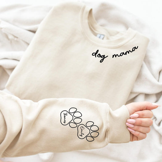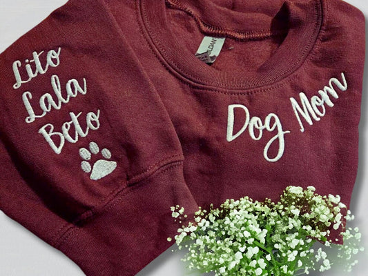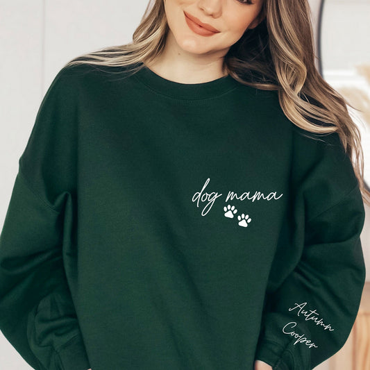 Embroidered Dog Mama Sweatshirt with Pet Names on Sleeve Gift for Dog Lover