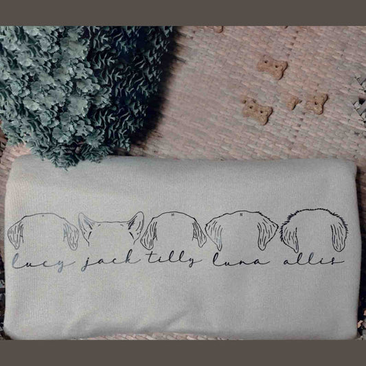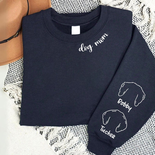 Embroidered Dog Mom Crewneck With Dog Ear on Sleeve Gift For Pet Lover