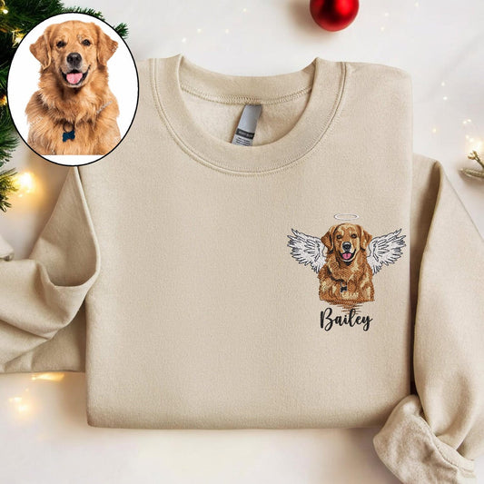Embroidered Angel Dog with Wings Pet Memorial Sweatshirt Christmas Gift for Pet Lovers