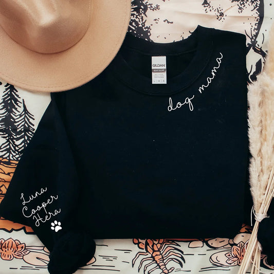 Embroidered Dog Mama Sweatshirt with Pet Names on Sleeve Gift for Pet Lover