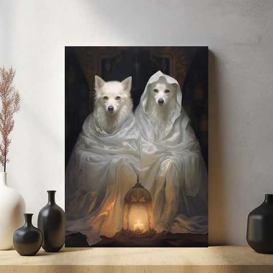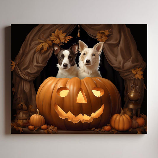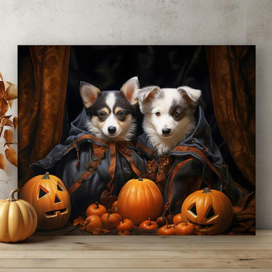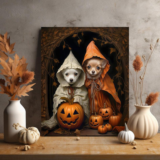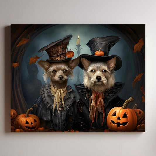 Halloween Two Pets Portrait Poster Canvas Halloween Wall Decor Art Gift for Pet Lovers
