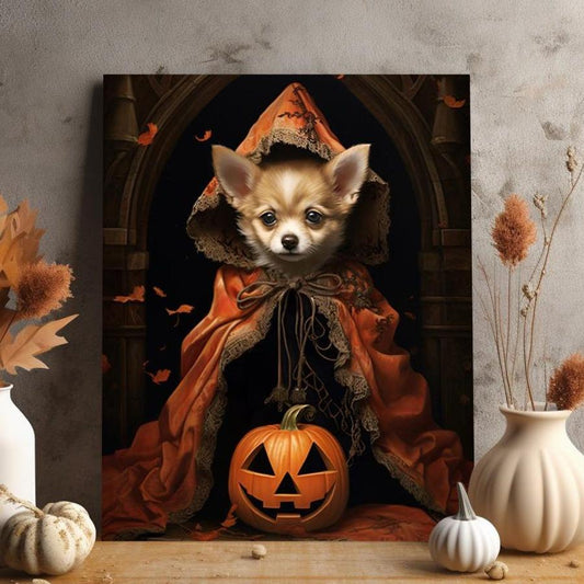 Halloween Pet Portrait Poster Canvas Halloween Wall Decor Art Gift for Pet Lovers