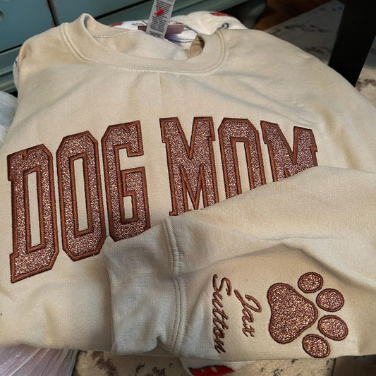 Personalized Dog Mom Glitter Applique Embroidered Sweatshirt Hoodie Gift for Pet Lovers