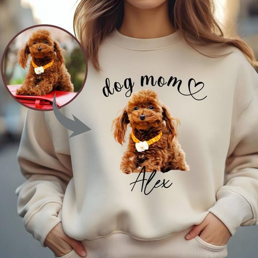 Personalized Dog Mom Sweatshirt Hoodie with Dog Portrait Photo and Name Keepsake Gift for Pet Lovers