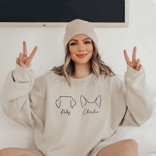 Personalized Embroidered Dog Mom Sweatshirt Hoodie with Pet Ears On Sleeve Gift For Pet Lovers