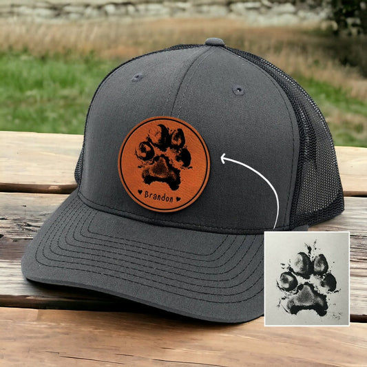 Personalized Pet Paw Print Leather Patch Trucker Hat with Name Gift for Pet Lovers