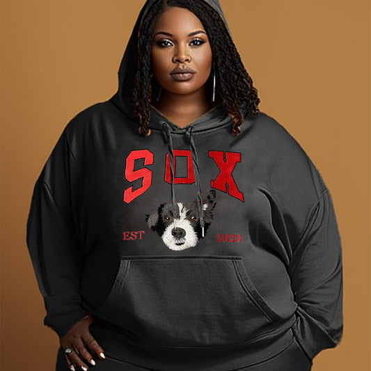 Personalized Plus Size EST Sweatshirt Hoodie with Embroidered Pet Dog Portrait and Name Keepsake Gift for Pet Lovers