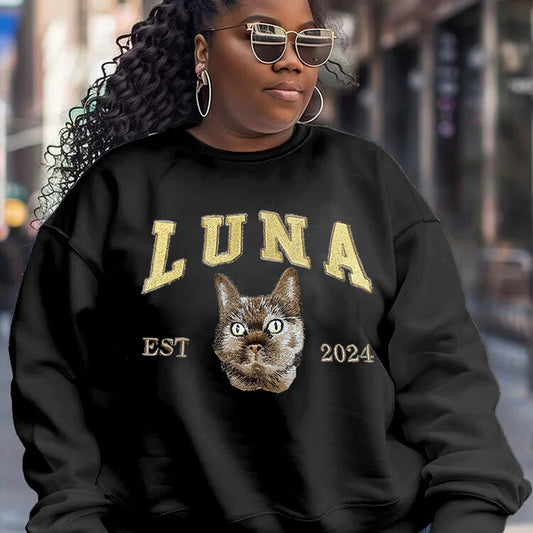 Personalized Plus Size EST Sweatshirt Hoodie with Embroidered Pet Cat Portrait and Name Keepsake Gift for Pet Lovers