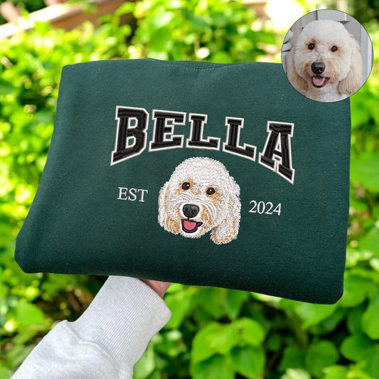 Personalized Pet Portrait Sweatshirt Embroidered Dog Face and Name EST Hoodie Pet Sympathy Gifts for Pet Lovers
