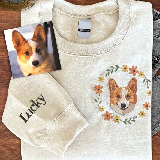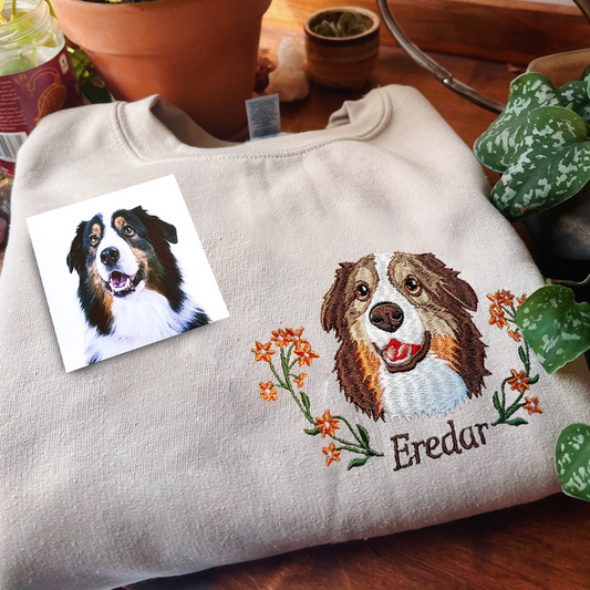 Custom Embroidered Pet Portrait Christmas Sweatshirt Gift for Pet Lovers
