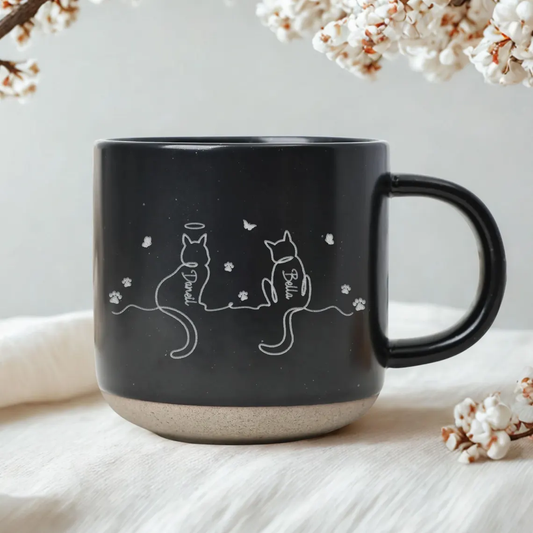 Personalized Dog & Cat Mug – Custom Cat Memorial Gift|Cat Lover & Cat Mom Coffee Pottery Mug with Line Art Design Christmas Gift