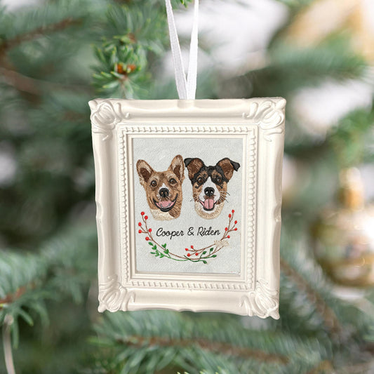 Custom Embroidered Dog Cat Pet Portrait Ornament Frame Christmas Gift for Pet Lovers