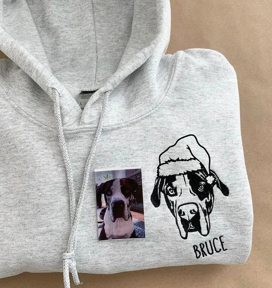 Pet Portrait Chritmas Sweatshirt Custom Embroidered Dog Photo Hoodie Keepsake Gift