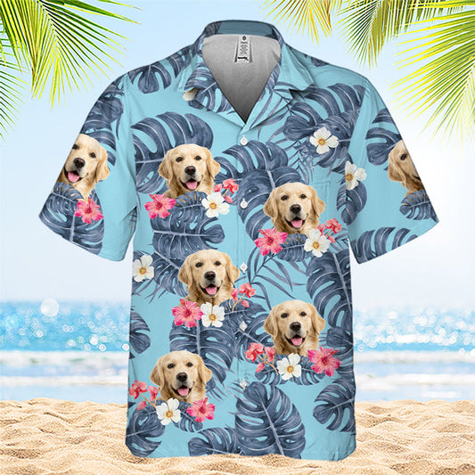 Custom Pet Face Hawaiian Shirt – Dog & Cat Tropical Leaves Unisex Summer Shirt, Vacation Gift for Pet Owners, Pet Lover Gift