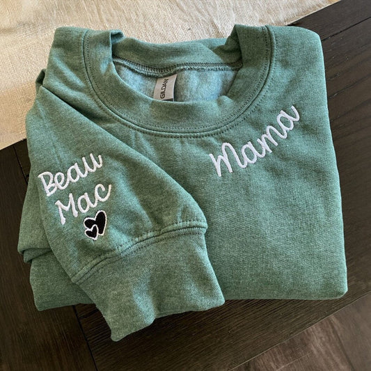 Embroidered Mama Sweatshirt with Kids Names on Sleeve Mother's Day Gift