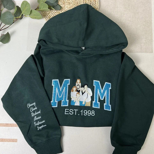 Personalized Embroidered Glitter Mom Sweatshirt Hoodie with Family Photo Mother's Day Gift for Mom Nana