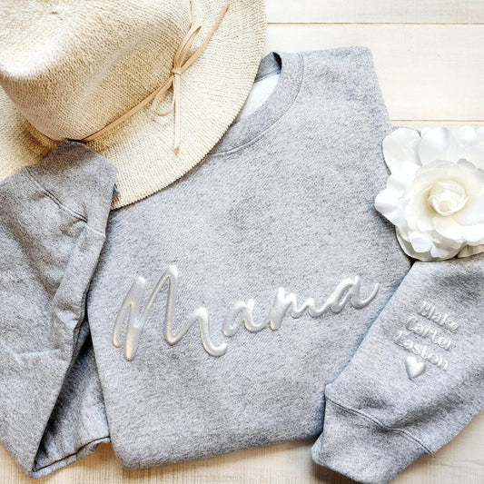 Custom Embroidered Mama Sweatshirt with Kids Names on Sleeve Mother's Day Gift for Mom Grandma