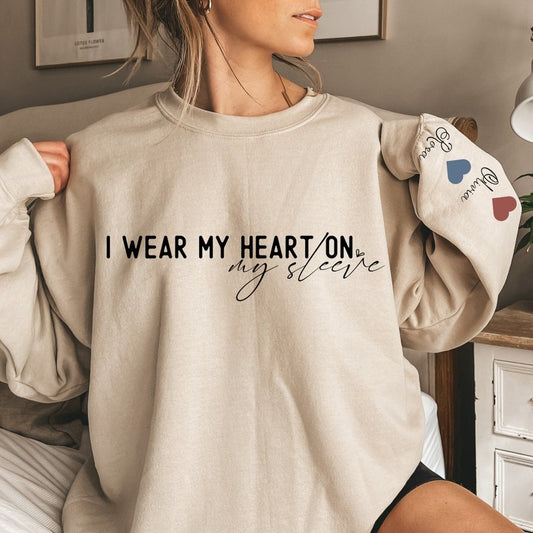 Personalized I Wear My Heart On My Sleeve Sweatshirt Gift for Mom