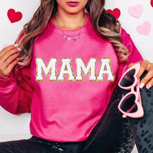 Personalized Glitter Patch Embroidered MAMA Sweatshirt and Kid Names on Sleeve Mother's Day Gift