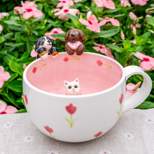 Personalized Pet Figure Mug – Custom Cat & Dog Handcrafted Ceramic Coffee Mug Gift