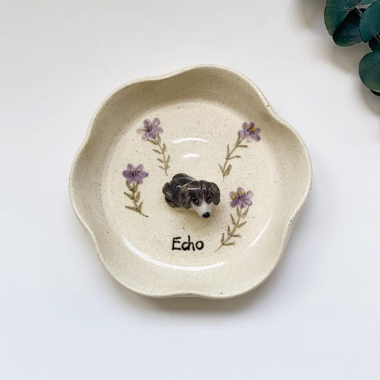 Custom Pet Jewelry Tray Personalized Floral Jewelry Tray Pet Figurine Ceramic Jewelry Tray Personalized Gifts for Pet Lovers Pet Memorial