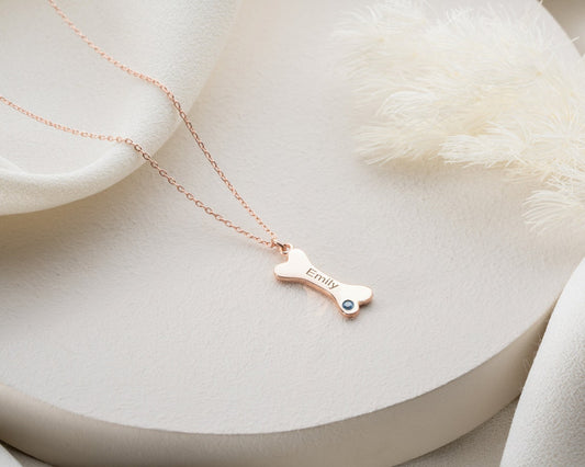 Personalized Dog Bone Shaped Necklace with Name Birthstone Unique Birthday Memorial Gift For Pet Lovers