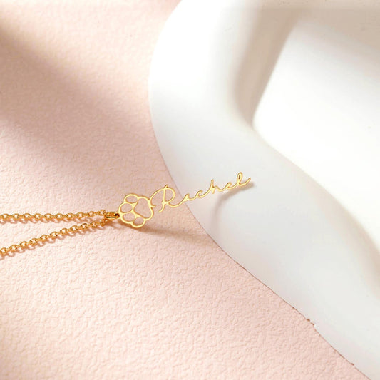 Personalized Pet Paw Print Name Necklace Unique Gift Idea Pet Memorial Gift