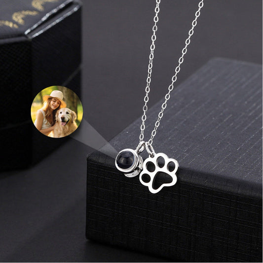 Paw Name Projection Necklace with Heart Projection Photo Necklace Customized Picture Inside Jewelry Pet Memorial Gift Mothers Day Gift