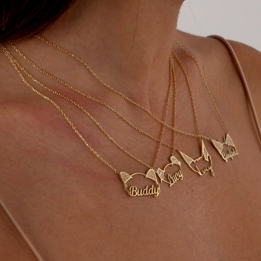 Personalized Pet Ear Necklace with Name – Custom Memorial Jewelry Christmas Gift for Dog & Cat Lovers