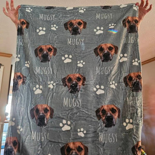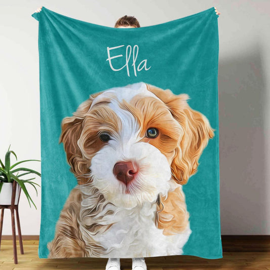 Personalized Pet Photo Blanket with Name Christmas Gift for Pet Lovers
