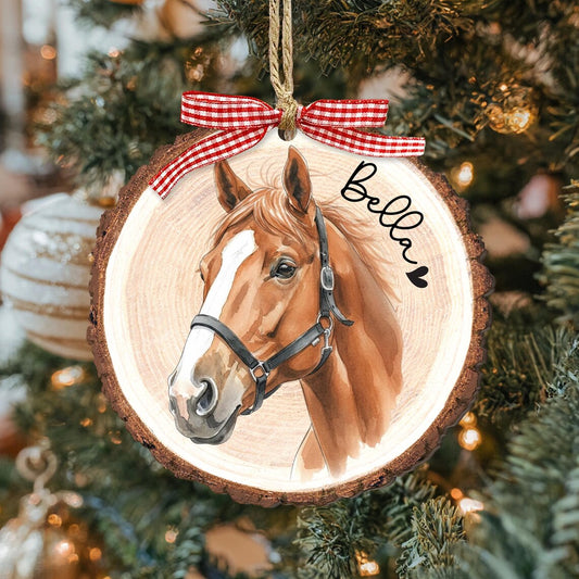 Personalized Watercolor Portrait Wooden Christmas Ornament Christmas Gift for Horse Lover