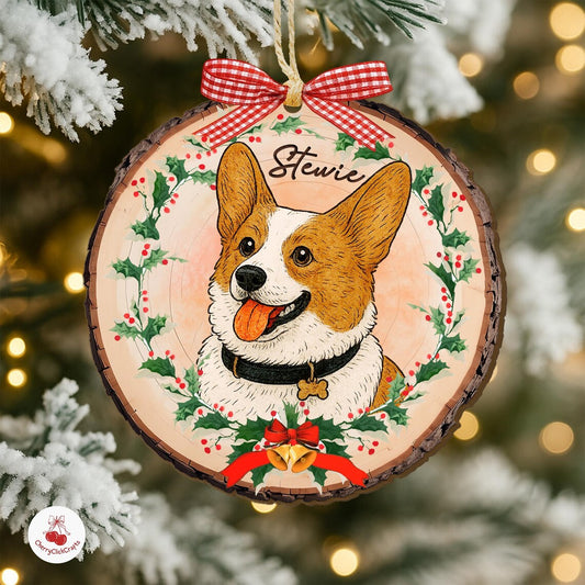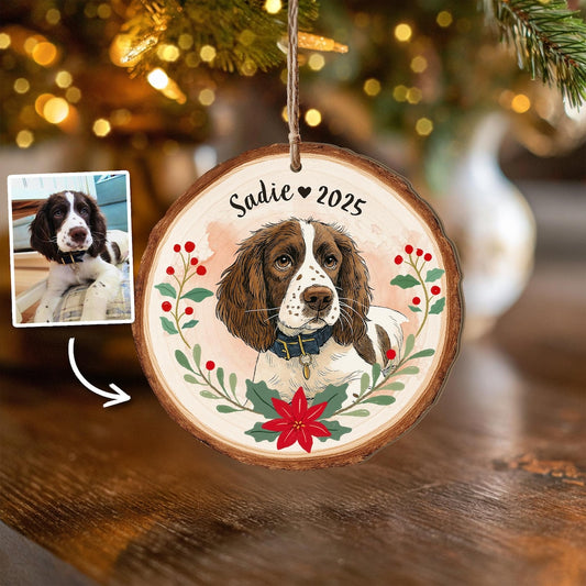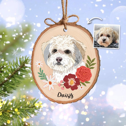 Personalized Watercolor Dog Pet Portrait Wooden Christmas Ornament Christmas Gift for Pet Lovers