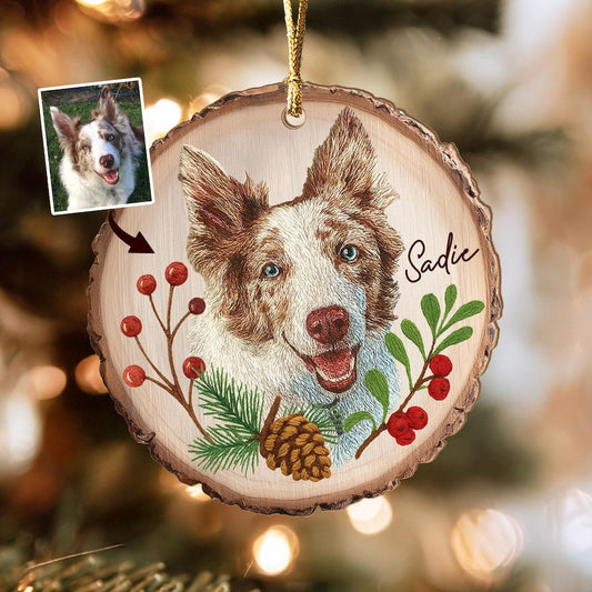 Personalized Embroidered Pet Portrait Wooden Christmas Ornament Christmas Gift for Dog Cat Lovers