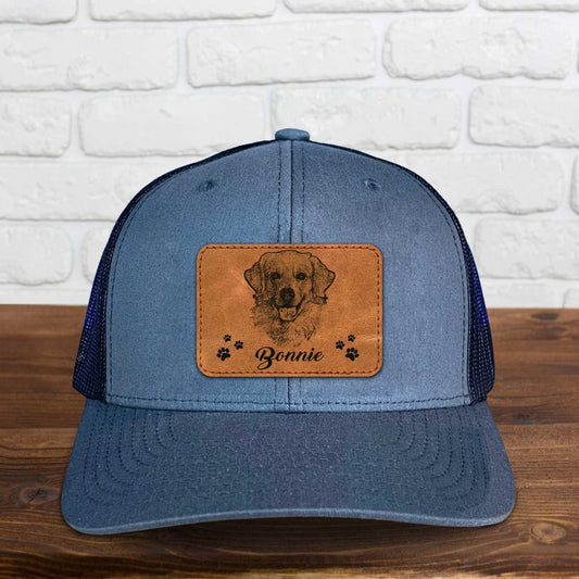 Individuelle Haustiergesichts-Leder-Patch-Mütze mit Namen – Einzigartiges Geschenk für Hunde- und Katzenliebhaber