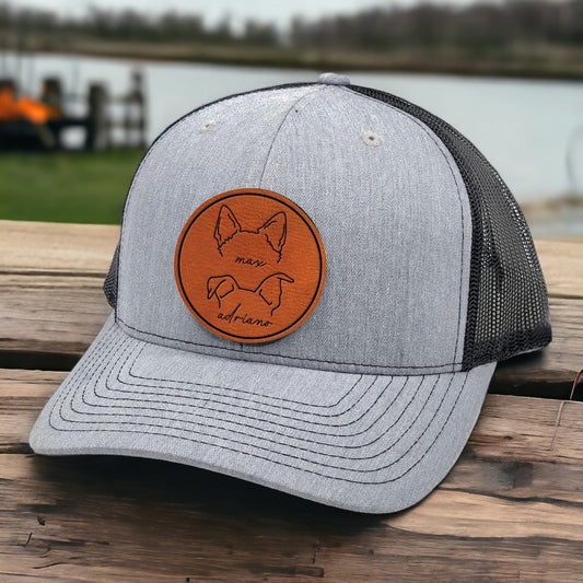 Benutzerdefinierte Haustier Ohren Linie Kunst Leder Patch Trucker Hut mit Namen Andenken Geschenk für Tierliebhaber