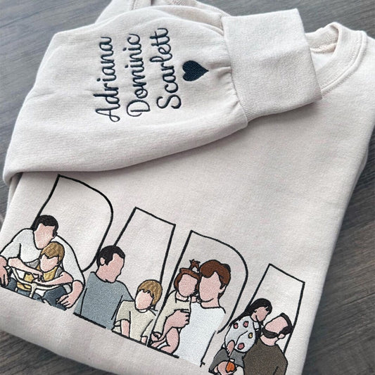 Benutzerdefinierte Papa bestickt Foto Portrait Sweatshirt mit Kinder Namen auf Ärmel Geschenke für Papa Papa Vatertagsgeschenk