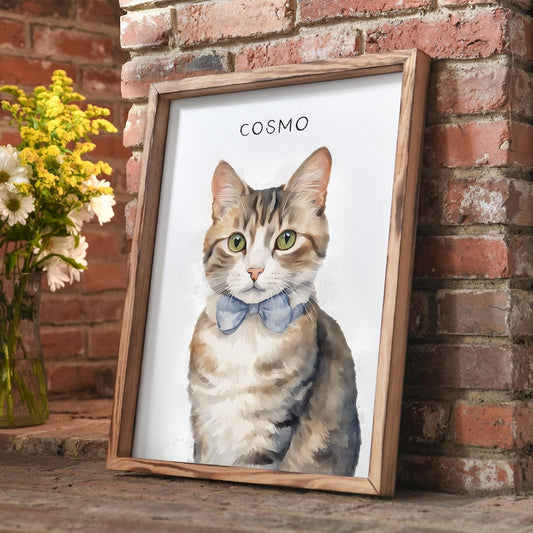 Individueller Aquarell-Haustierporträt-Leinwandrahmen mit Namen – Perfektes Weihnachtsandenken für Hunde- und Katzenbesitzer