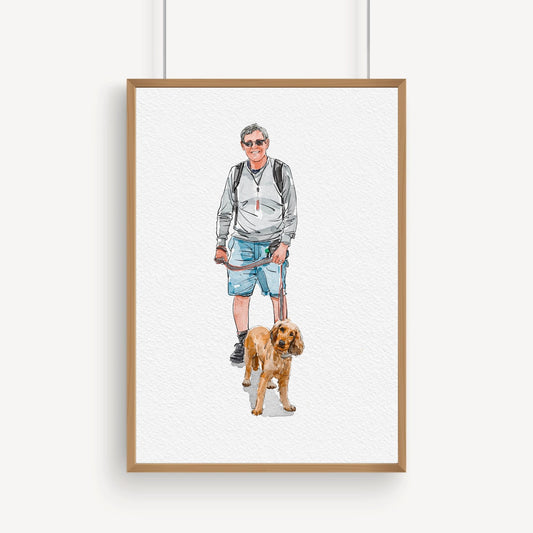 Personalisiertes Aquarell-Haustier- und Besitzerportrait vom Foto – Hunde-Erinnerungsgeschenk, Haustier-Erinnerungsgemälde