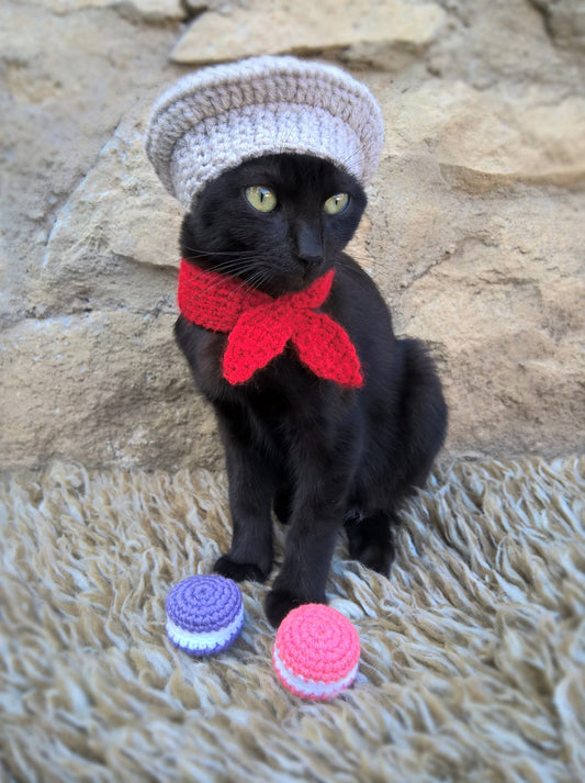 Französische Baskenmütze für Haustiere, Häkelmütze, Halloween-Kostüm, Geschenk für Tierliebhaber