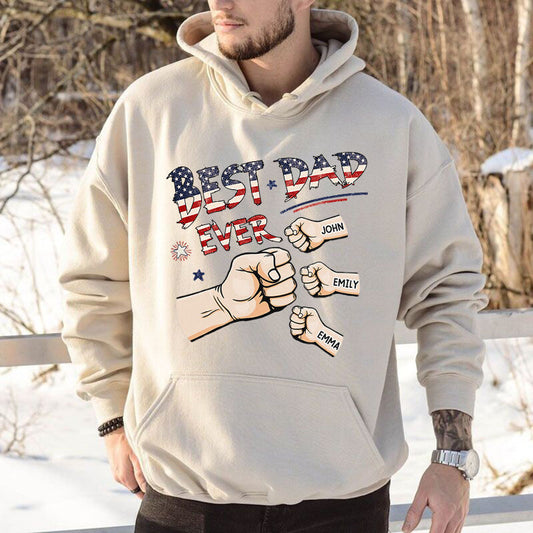 Personalisierter „Bester Papa aller Zeiten“-Hoodie mit den Namen der Kinder – Individuelles „Fist Bump Dad“-Sweatshirt, Vatertagsgeschenk für Papa, personalisierter Namens-Hoodie für Männer, einzigartiges Geschenk für ihn