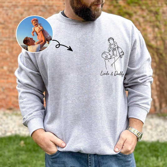 Benutzerdefinierte Papa bestickt Foto Portrait Sweatshirt mit Kindernamen auf Ärmel Geschenke für Papa Papa Vatertagsgeschenk