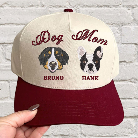 Personalisierte bestickte Snapback-Kappe mit Haustierportrait und Namen – Individuelle Baseballmütze für Hundemama, Geschenk für Hundeliebhaber