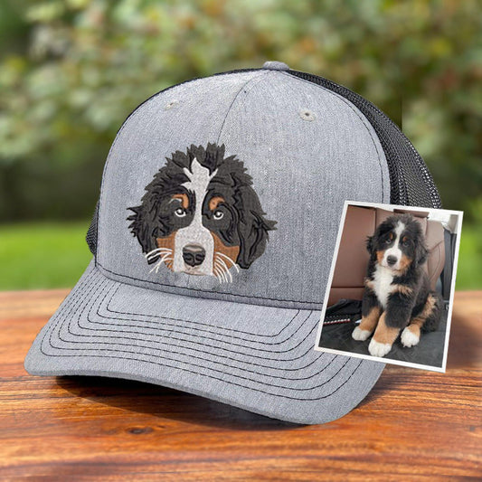 Personalisierte bestickte Trucker-Mütze mit Haustierportrait und Foto, Geschenk für Hunde- und Katzenliebhaber