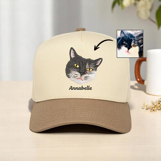 Personalisierte bestickte Snapback-Mütze mit Haustierporträt – Individuelle Vintage-Mütze, Weihnachtsgeschenk für Hunde- und Katzenliebhaber