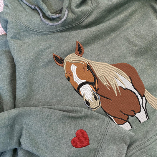 Personalisiertes besticktes Haustierportrait Sweatshirt Hoodie Geschenk für Pferdeliebhaber