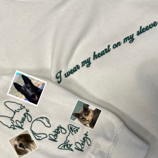 Personalisiertes Sweatshirt mit bestickten Haustierohren, „I Wear My Heart on My Sleeve“, Geschenke für Hundeliebhaber