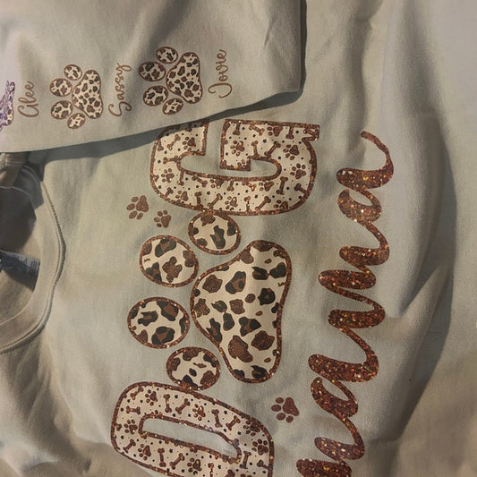 Personalisiertes Leoparden-Sweatshirt für Hundemama mit Hundenamen am Ärmel, Geschenk für Hundemama