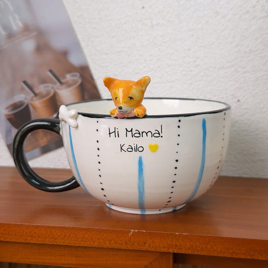 Individuelle Haustierfigur-Tasse mit Namen â Handgemachte Kaffeetasse aus Keramik mit Katze und Hund, einzigartiges Weihnachtsgeschenk fĂŒr Tierliebhaber