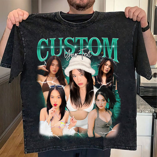 Personalisiertes Vintage-Bootleg-Rap-Shirt, individuelle Fotoideen, Valentinstagsgeschenk für Sie/Ihn
