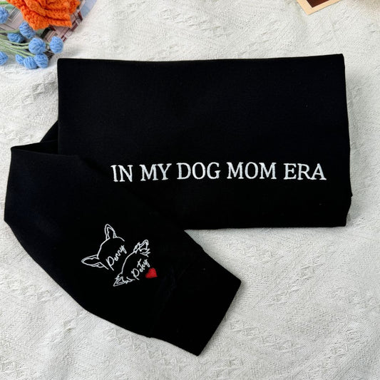 Personalisiertes Sweatshirt mit Hundeohren-Umriss, bestickt, aus der Zeit meiner Hundemama, beste Geschenke für Haustierliebhaber